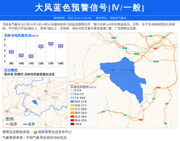 关岭县气象台继续发布大风蓝色预警信号[Ⅳ/一般]