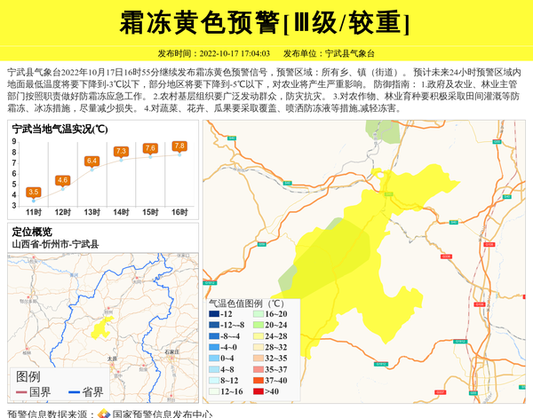 宁武县气象台发布霜冻黄色预警[Ⅲ级/较重] 相关文章