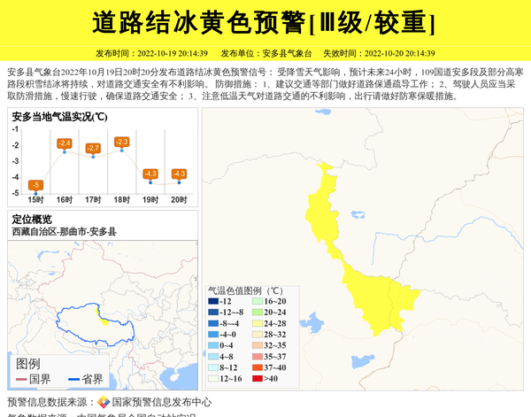 安多县气象台发布道路结冰黄色预警[Ⅲ级/较重]