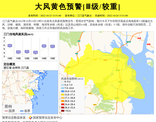 三门县气象台发布大风黄色预警[Ⅲ级/较重]