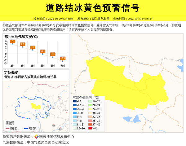 都兰县气象台发布道路结冰黄色预警信号