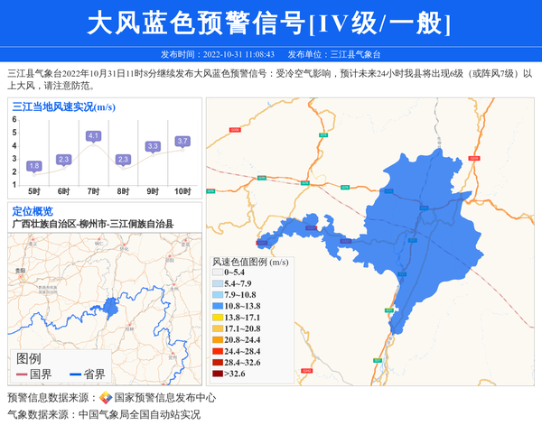 三江县气象台更新大风蓝色预警信号[IV级/一般] 相关文章