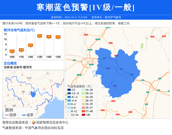 蛟河市气象局发布寒潮蓝色预警[IV级/一般] 相关文章