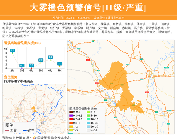 蓬溪县气象台发布大雾橙色预警信号[II级/严重] 相关文章