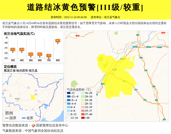 依兰县气象台发布道路结冰黄色预警[III级/较重]
