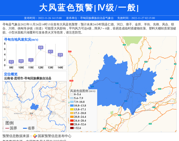 寻甸回族彝族自治县气象台发布大风蓝色预警[Ⅳ级/一般] 相关文章