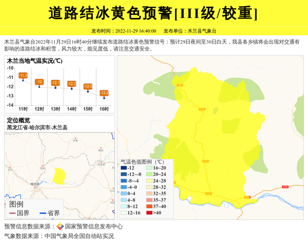 木兰县气象台发布道路结冰黄色预警[III级/较重] 相关文章