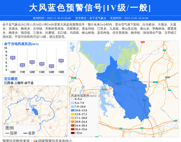 余干县气象台更新大风蓝色预警信号[IV级/一般] 相关文章