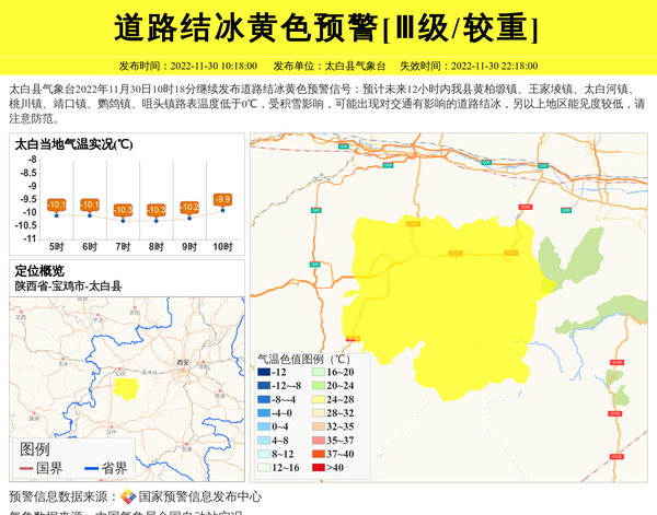 太白县气象台继续发布道路结冰黄色预警[Ⅲ级/较重]