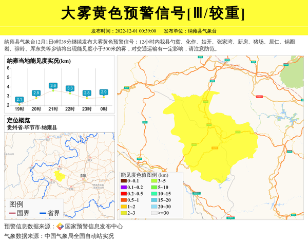 纳雍县气象台继续发布大雾黄色预警信号[Ⅲ/较重] 相关文章